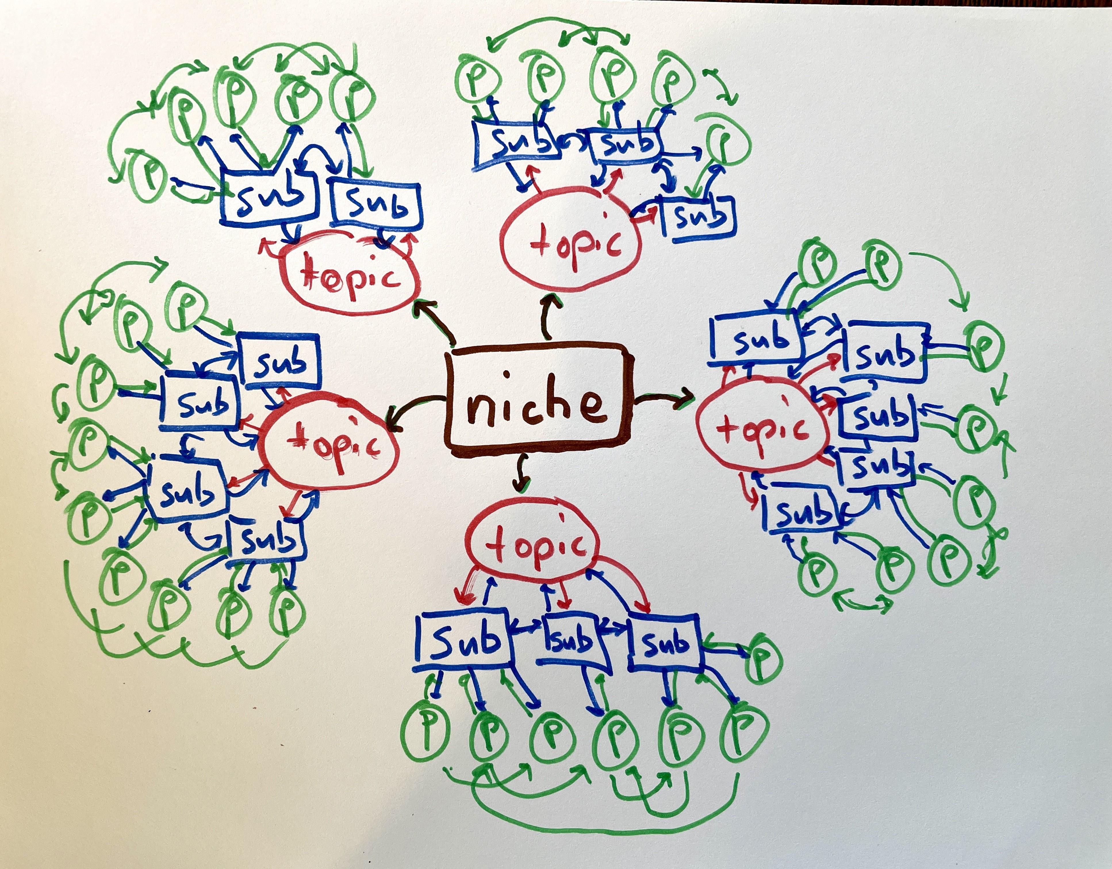 The "p" stands for "post." These are obviously even more specific topics that link up to the subtopics as well as sideways between them.